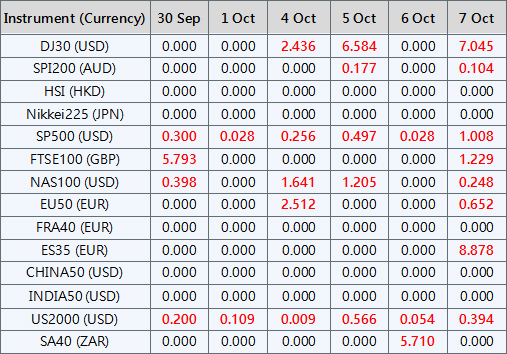 Please note the above data are subject to changes. Please refer to MT4/MT5 for details.