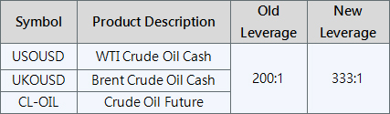 To further optimize the competitiveness and improve the trading environment, please be advised that the leverage on all Crude Oil products will be adjusted to 333:1 starts from 25th October 2021.