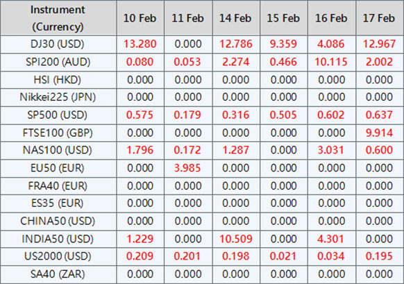 Please be advised that the dividends of the following index CFDs will be adjusted by upcoming ex-dividend dates. The comment for trading index CFDs will be in the following format “Div&<Product Name>&<Net Volume>” which show in the balance after the close of the day before the dividend payment date.