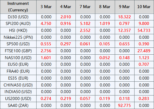 Please be advised that the dividends of the following index CFDs will be adjusted by upcoming ex-dividend dates. The comment for trading index CFDs will be in the following format “Div&<Product Name>&<Net Volume>” which show in the balance after the close of the day before the dividend payment date.