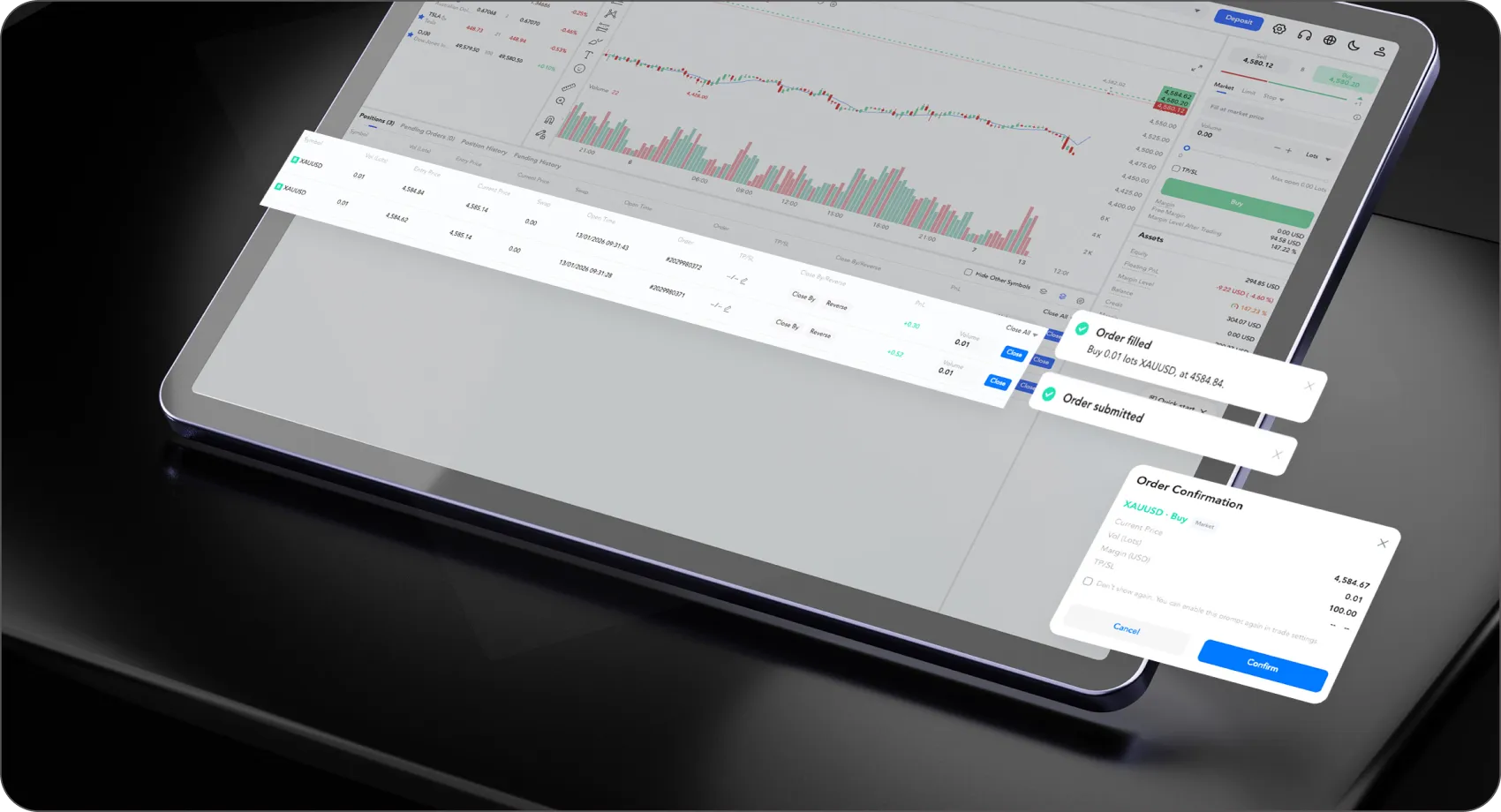 Trade seamlessly on desktop, tablet, and mobile browsers.